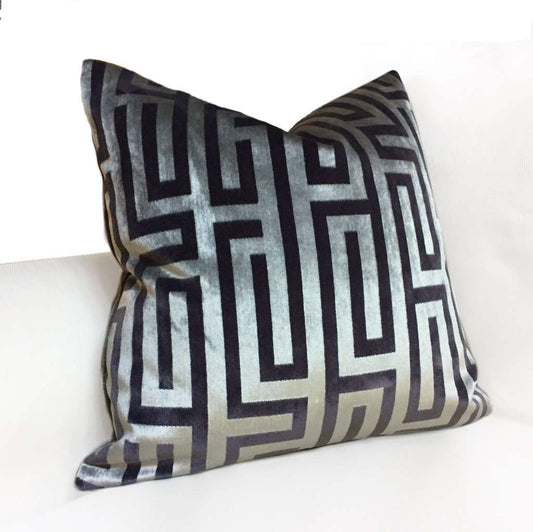 Robert Allen Plush Keys Nightsky Black Greek Key Pillow Cover (Fabric by the Yard available)