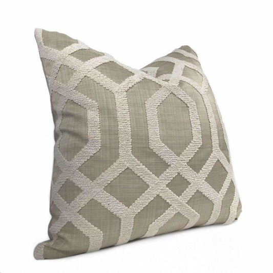 (CLEARANCE) Merritt Cream & Tan Boucle Embroidered Geometric Lattice Pillow Cover