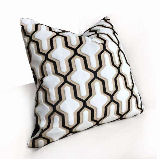 Escher Black White Beige Geometric Trellis Cut Velvet Pillow Cover