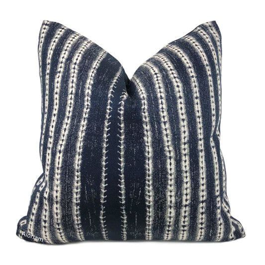 (CLEARANCE) Sebu Dark Navy Blue White Ikat Stripe Pillow Cover