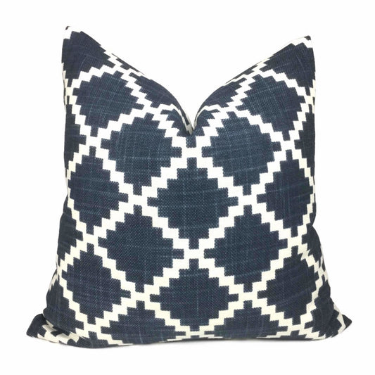 Zoe Ikat Lattice Navy Blue Off-White Geometric Pillow Cover (Made from Lacefield Designs fabric)