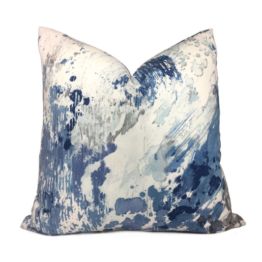 Orinoco Blue Gray White Modern Art Cotton Print Pillow Cover