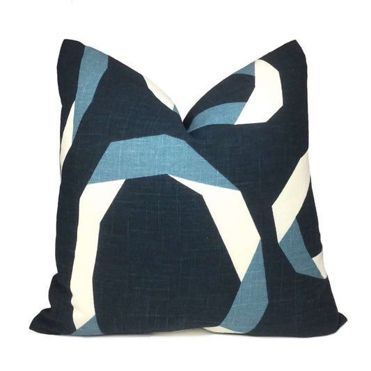 (CLEARANCE) Navy Blue Off-White Diamond Geometric Pillow Cover