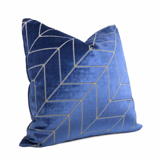 (CLEARANCE) Leyland Blue Diagonal Chevron Velvet Pillow Cover