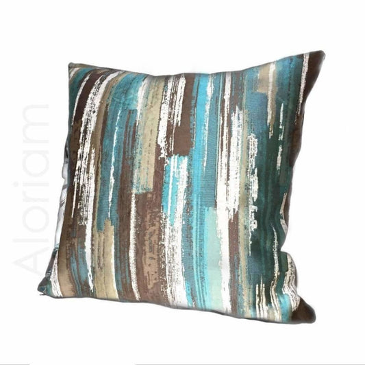 (CLEARANCE) Designer Abstract Paint Brush Strokes Teal Green Brown Beige Pillow Cover