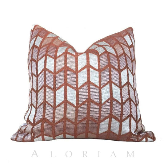 (CLEARANCE) Pink Copper Rust Chevron Herringbone Geometric Pattern Pillow Cover