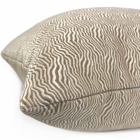 Kravet Candice Olson Abstract Wavy Lines Silvery Beige Taupe Throw Pillow Cushion Cover (Jentry fabric)