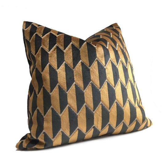 Robert Allen Alessio Geometric Copper Brown Black Velvet Pillow Cover