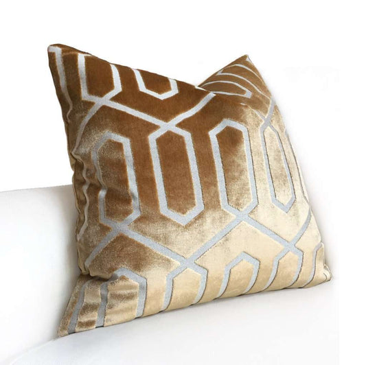 Robert Allen Bengal Lattice Golden Brass Geometric Italian Cut Velvet Pillow Cover