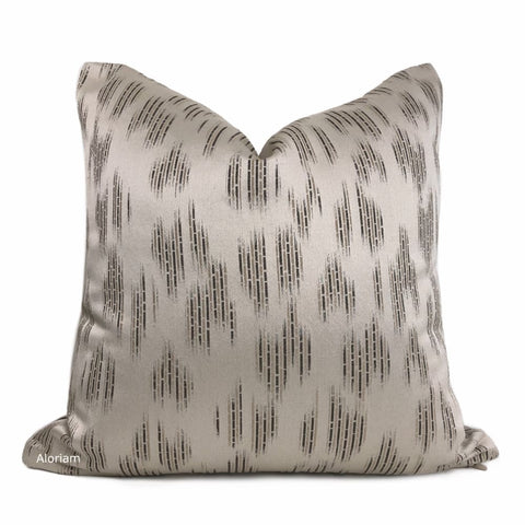 Ripley Oatmeal & Metallic Silver Two Tone Squiggle Stripe Velvet Pillow Cover