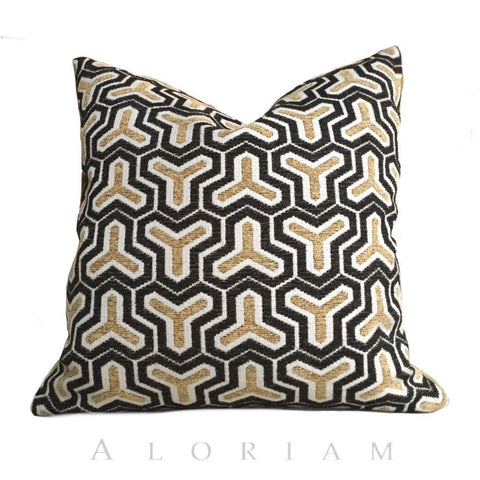 Robert Allen Alessio Black Beige Geometric Velvet Pillow Cover