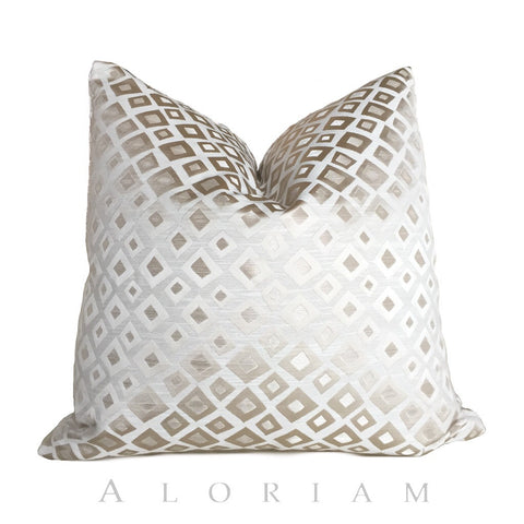Riverton Modern Geometric Charcoal Gray White Taupe Pillow Cover (Fabric by the Yard available)