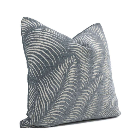 (CLEARANCE) Arcadia Slate Gray-Blue Botanical Ferns Chenille Pillow Cover