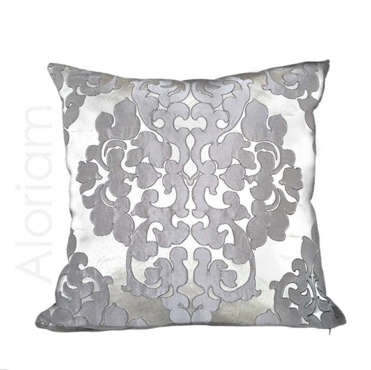 Silver Gray Damask Floral Satin Decorative Throw Pillow Cushion Cover