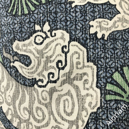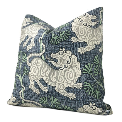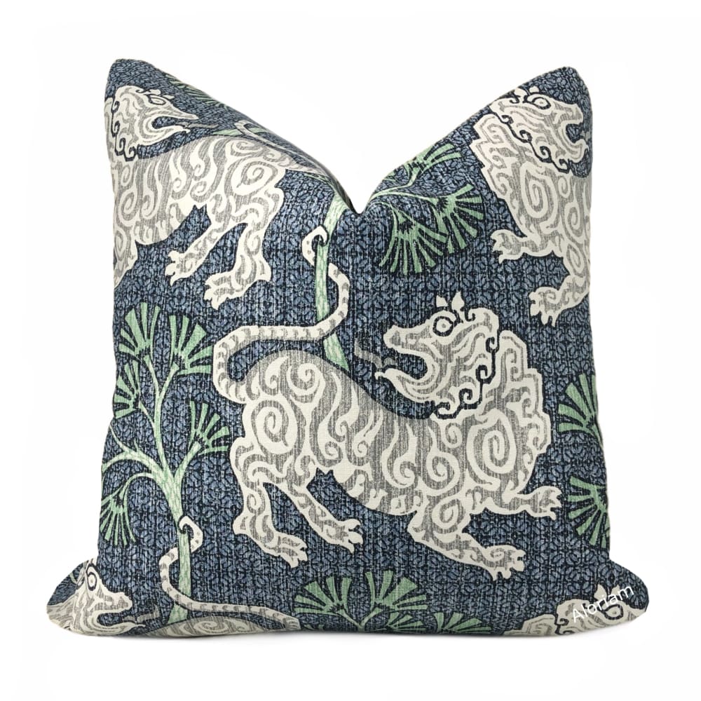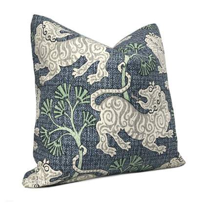 (CLEARANCE) Kathmandu Navy Blue Green Chinoiserie Lion Print Pillow Cover