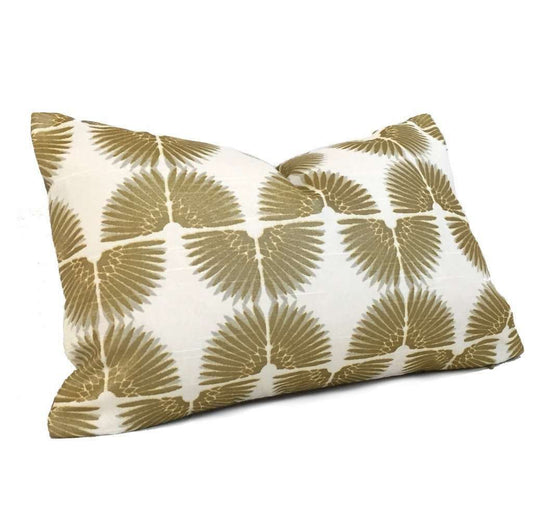 Erte Art Deco Fans Metallic Gold Cream Cotton Print Pillow Cover (Fabric by the Yard available)
