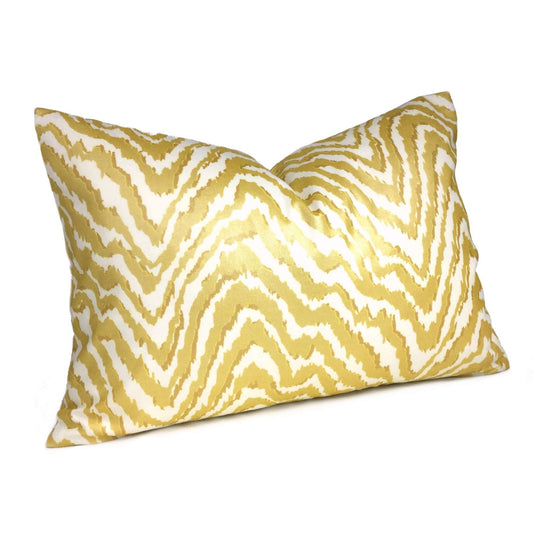 Metallic Gold Cream Animal Stripes Cotton Print Pillow Cover