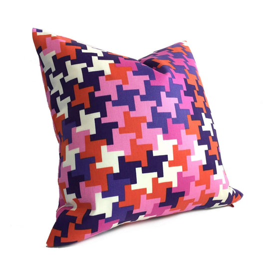 (CLEARANCE) Trina Turk Schumacher Jax Modern Houndstooth Pink Purple Red Indoor Outdoor Pillow Cover