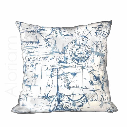 Nantucket Blue White Sailboat Nautical Sketch Pillow Cover