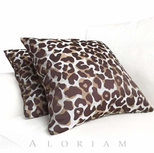 Designer Cheetah Leopard Animal Pattern Brown Beige Pillow Cover