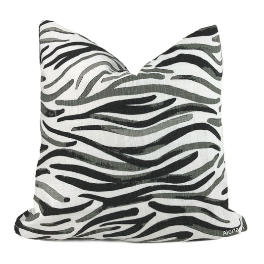 Sunbrella Gray Taupe Brushstroke Stripe Indoor Outdoor Pillow Cover (Performance fabric)