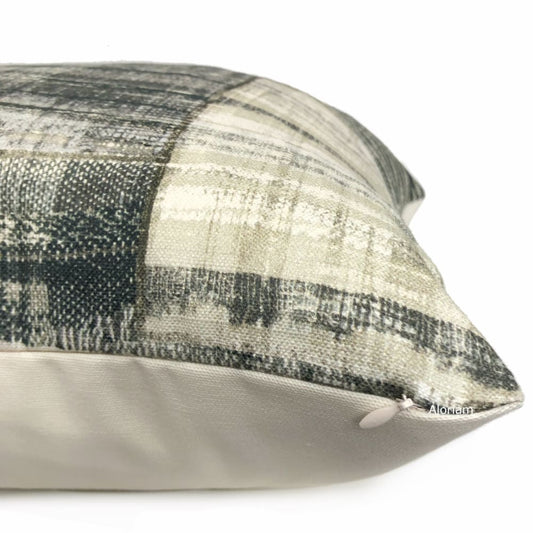 Khimani Black Beige Plaid Pillow Cover (Thibaut fabric)