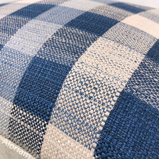 Clifton Blue Cream Plaid Checks Pillow Cover (Fabric by the Yard available)