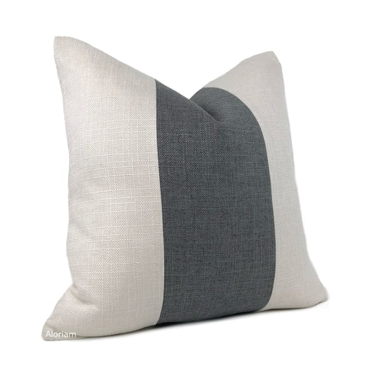 Hudson Granite Gray Creamy White Wide Panel Stripe Pillow Cover