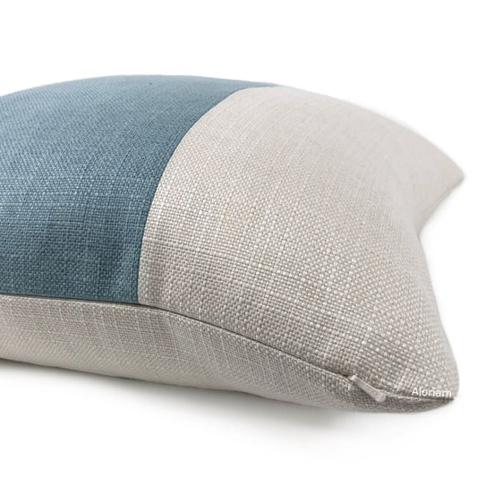 Tybee Ocean Blue Beige Brown Textured Stripes Pillow Cover (Fabric by the Yard available)