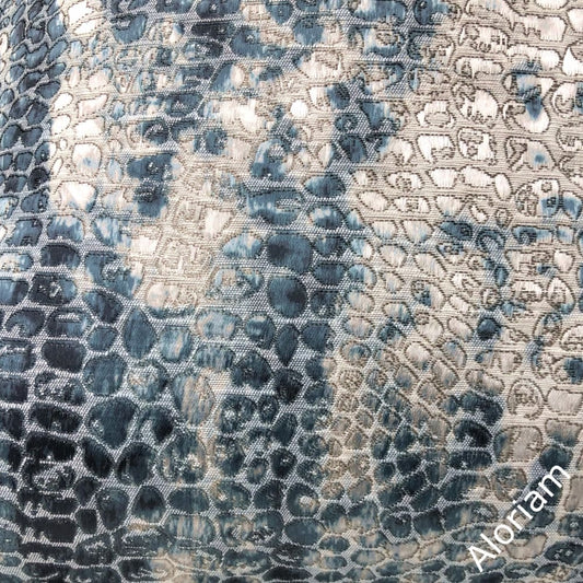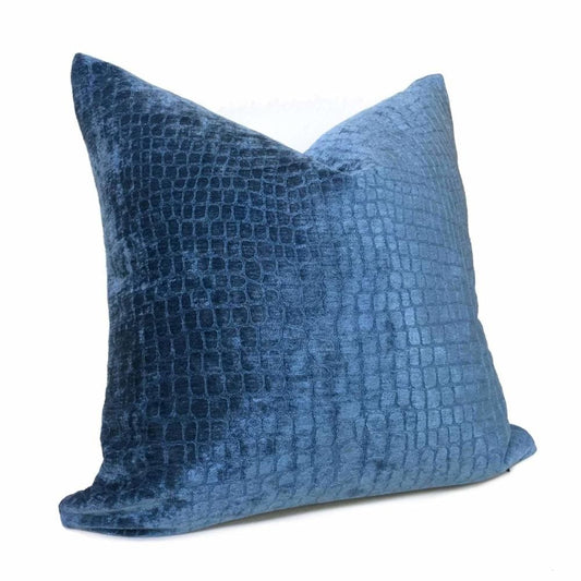 Cerulean Blue Crocodile Alligator Shiny Chenille Velvet Pillow Cover (Fabric by the Yard available)