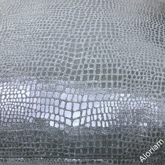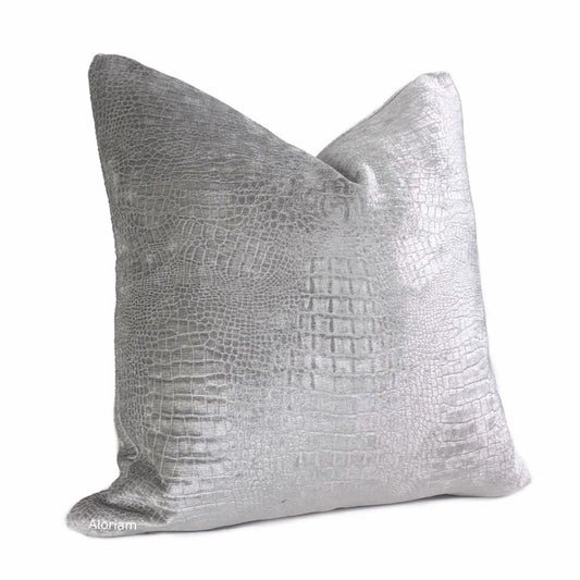 Caiman Silver Blue Metallic Faux Crocodile Skin Pillow Cover