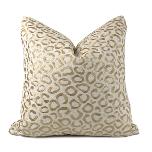 Sheba Golden Brown Embroidered Leopard Spots Pillow Cover