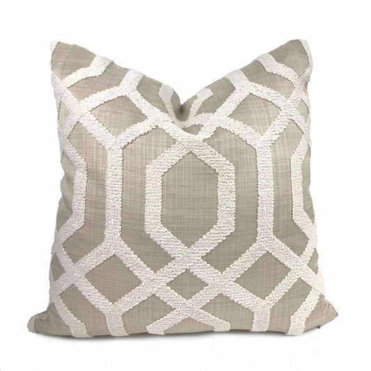 Two Tone Silver Pewter Gray Embroidered Geometric Pillow Cover