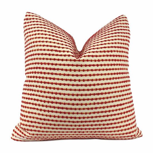 Sinclair Red Tan Embroidered Textured Stripe Pillow Cover (Kravet fabric by the yard available)