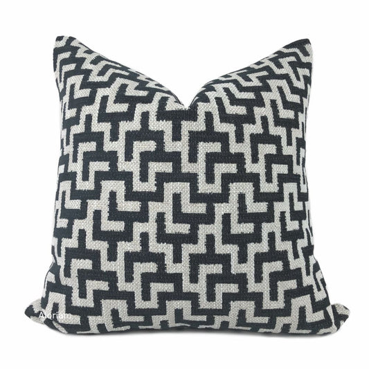 Gaius Dark Navy Blue Greek Key Chenille Pillow Cover (Fabric by the Yard available)