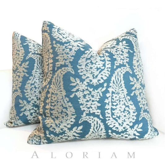Fabricut Napoli Turquoise Teal Cream Paisley Motif Pillow Cover