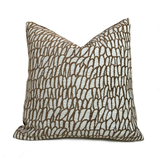 (CLEARANCE) Fabricut Dundee Tan Faux Suede Alligator Crocodile Pattern Pillow Cover (Fabric by the Yard available)
