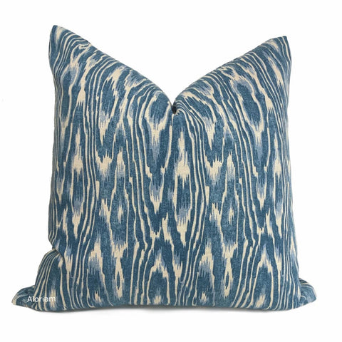 Kauri Blue Beige Faux Bois Print Pillow Cover