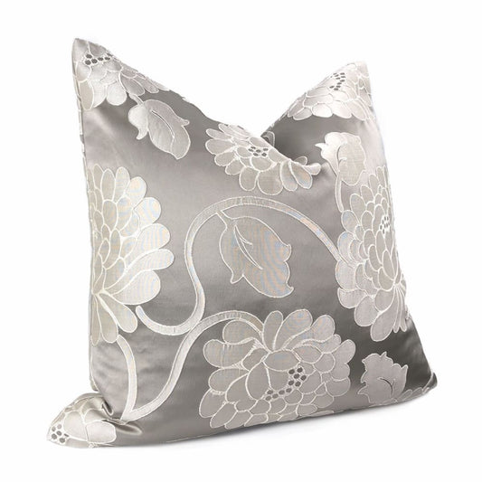 Fontaine Warm Gray Floral Satin Jacquard Pillow Cover