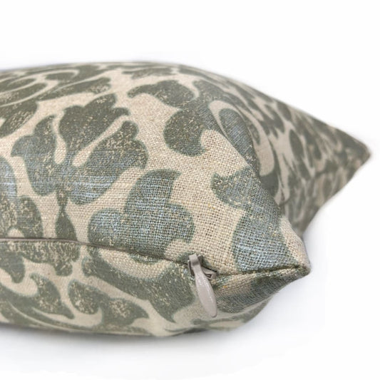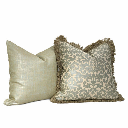 Gainsborough II Sage Green Beige Baroque Floral Damask Fringed Pillow Cover (Fabric by the Yard available)