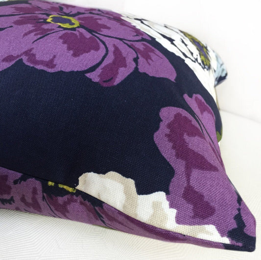 (CLEARANCE) Robert Allen Navy Blue Purple Violet Modern Floral Print Pillow Cover