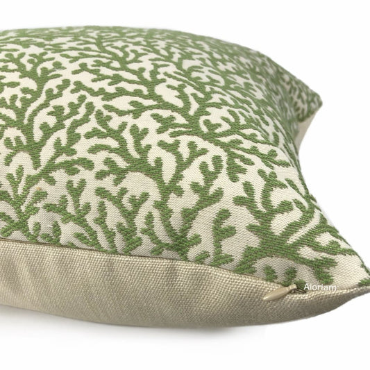 (CLEARANCE) Lahaina Teal Green Cream Beige Coral Reef Cut Velvet Pillow Cover