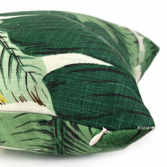 (CLEARANCE) Banana Leaf Tropical Palm Leaves Green Linen Print Pillow Cover