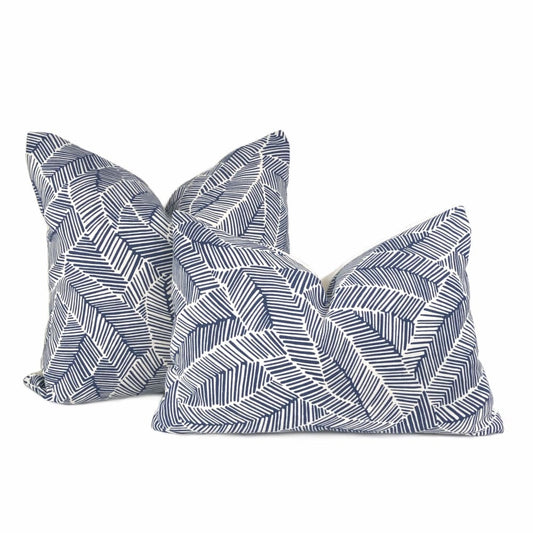 F Schumacher Abstract Leaf Navy Blue White Pillow Cover