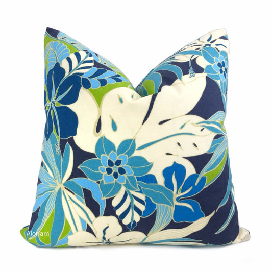 Fiji Blue Green White Tropical Floral Pillow Cover