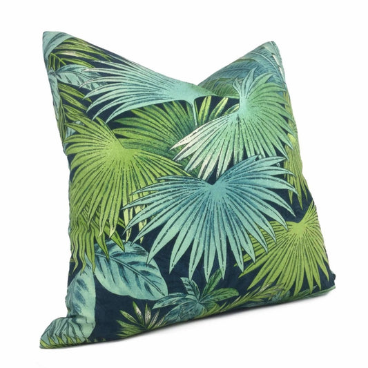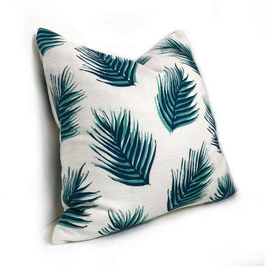 Bahama Breeze Blue Green Palm Fronds Botanical Cotton Print Pillow Cover