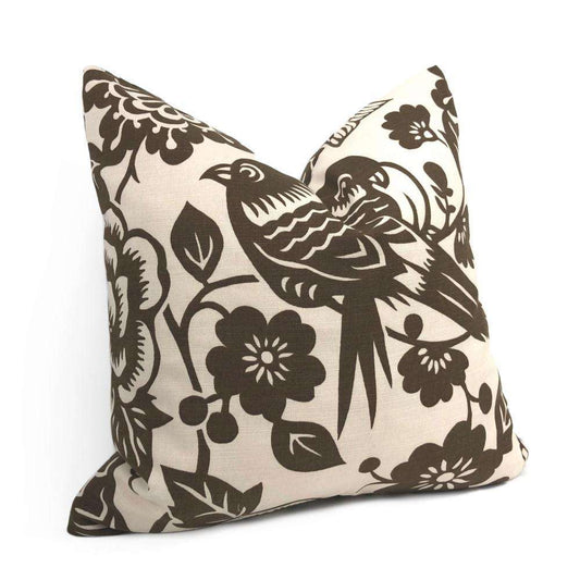 Duralee Thomas Paul Brown Ivory Aviary Pillow Cover