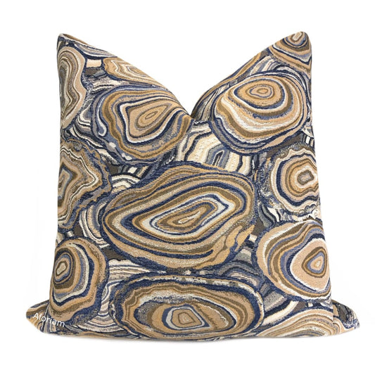 Preziosa II Blue Tan Beige Agate Geode Pattern Pillow Cover (Kravet fabric)