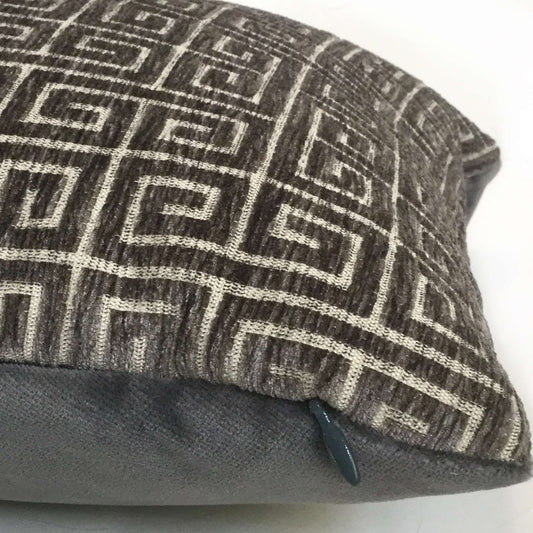 (CLEARANCE) Robert Allen Dark Gray Plush Greek Keys Chenille Pillow Cover