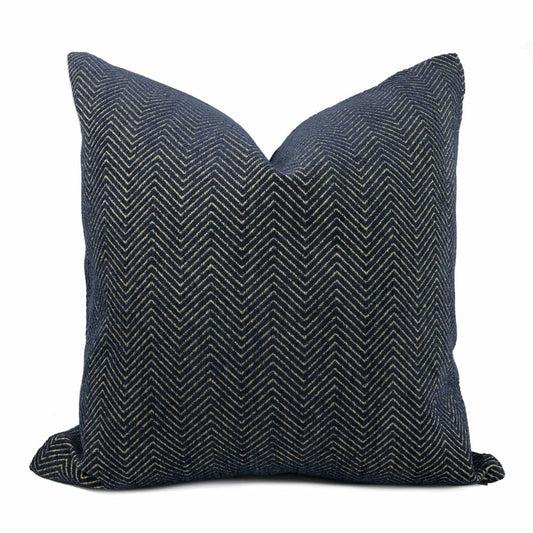 (CLEARANCE) Fairfax Blue & Gold Herringbone Chevron Pillow Cover